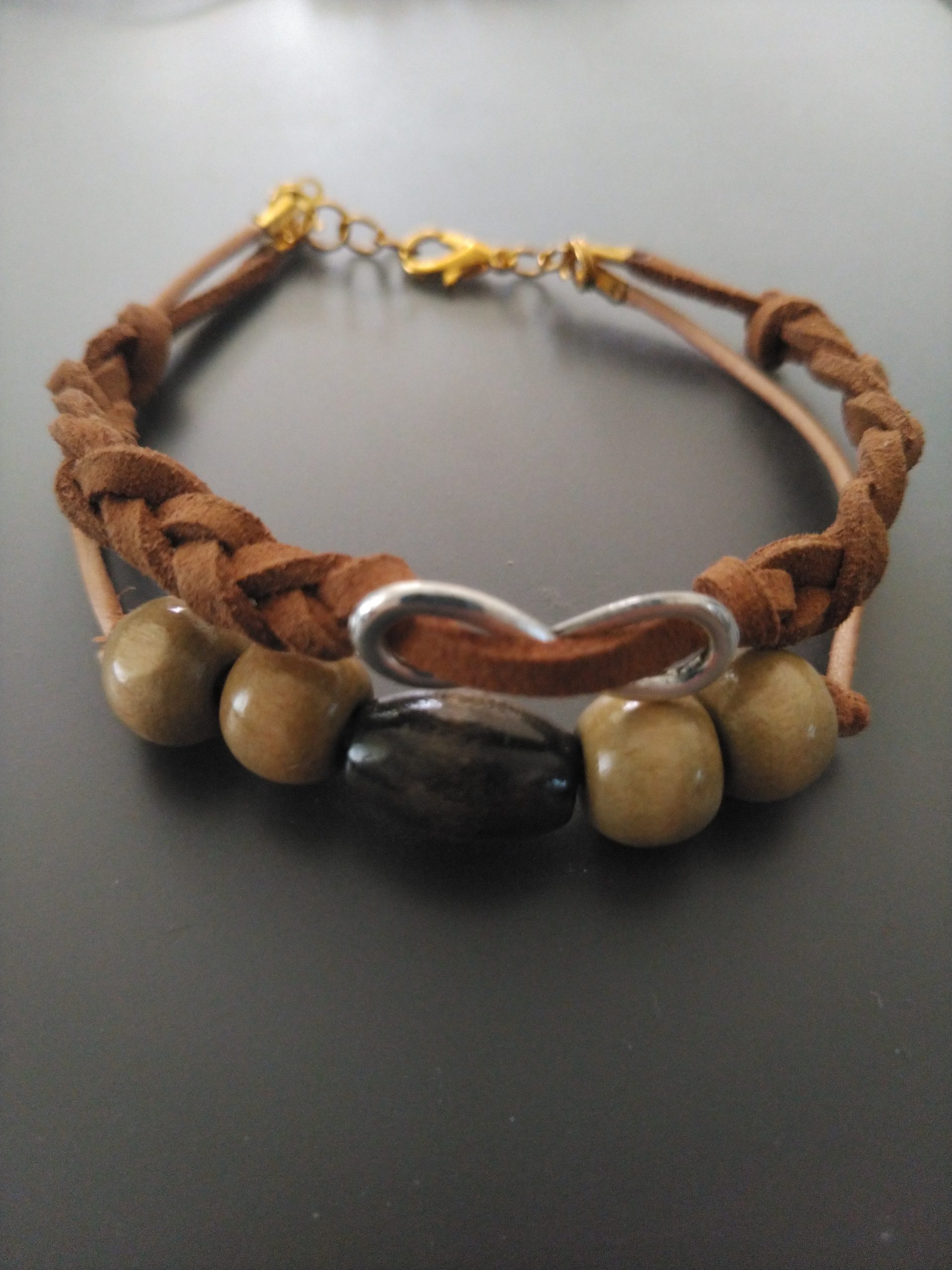 革紐 一本編み と 木のビーズ の二重ブレスレット