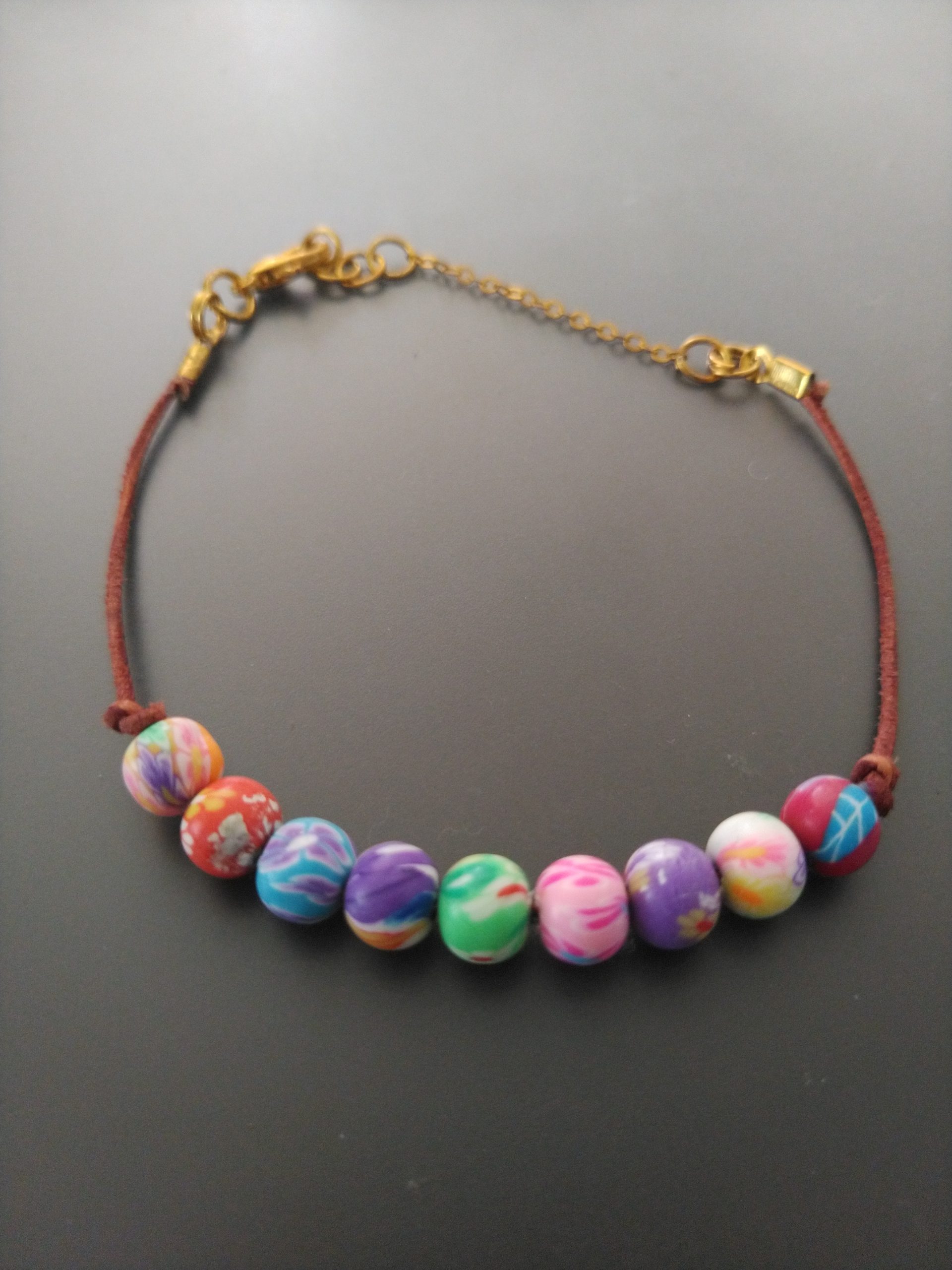 ブレスレット一ミリ革紐異国風ビーズ多め