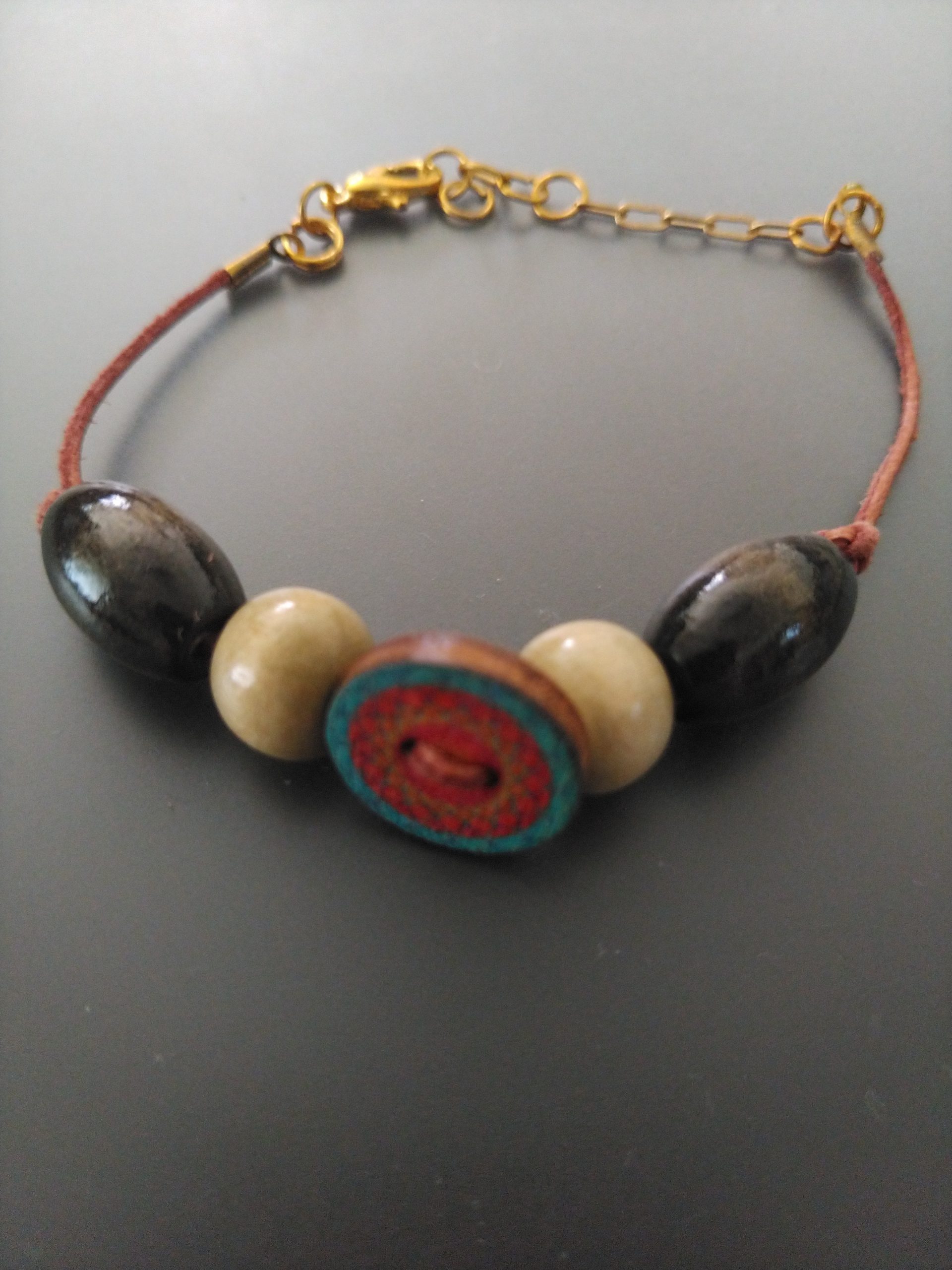 革紐 一本 木のビーズ のブレスレット